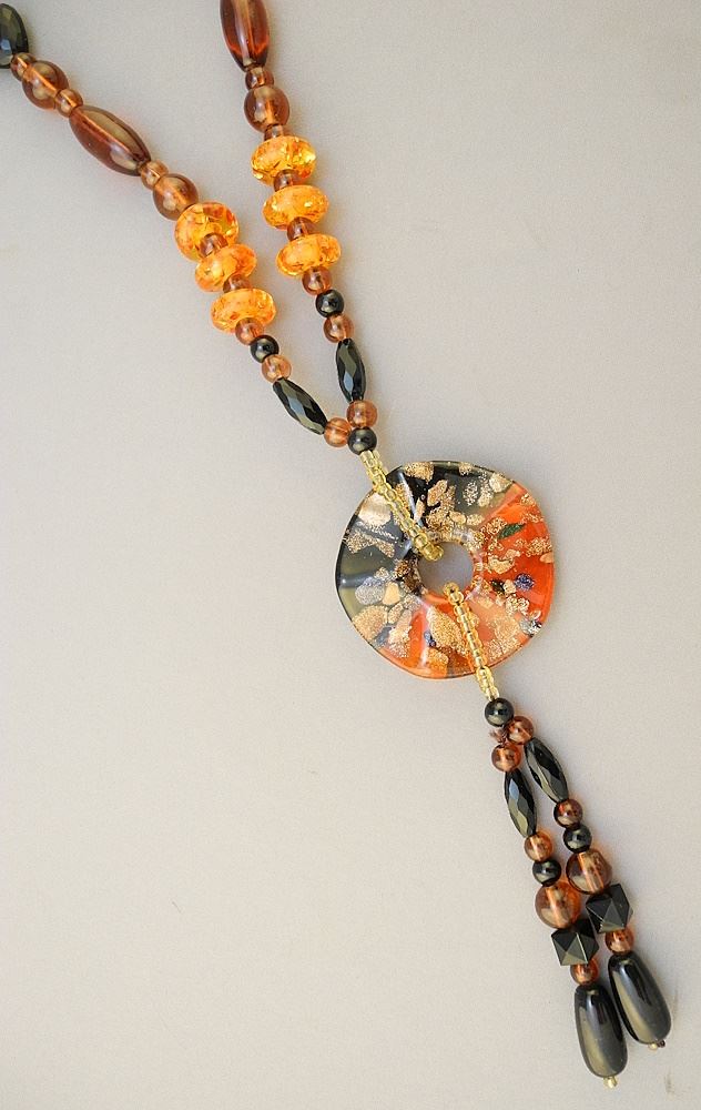 Italian Amber Goldstone Art Glass Pendant / Necklace.