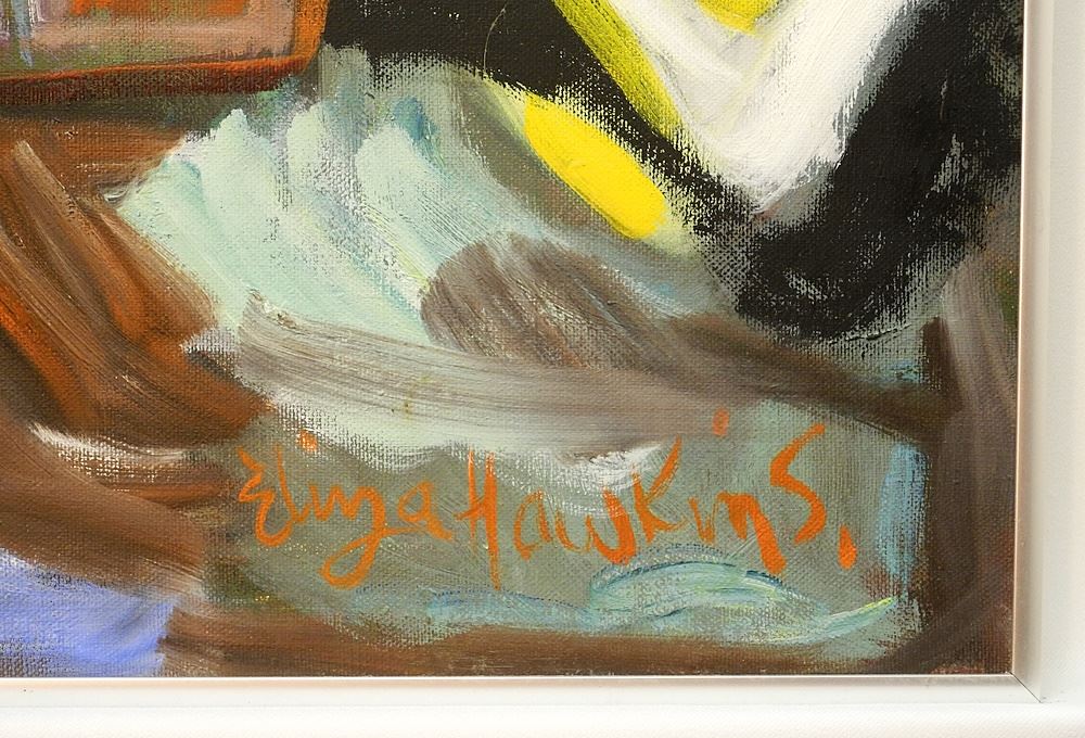 LOT 209 Oil on Canvas Signed Eliza Hawkins, 23 1/2" x 35 1/2", "Downtown". Estimate: $200 - $300 Sold For: $425 Auction Date: Tuesday, July 18 2023 at 4:00 PM