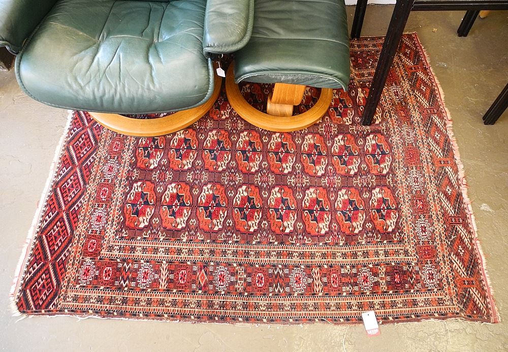 Antique Turkoman Carpet, approx. 58 x 48" (condition noted).