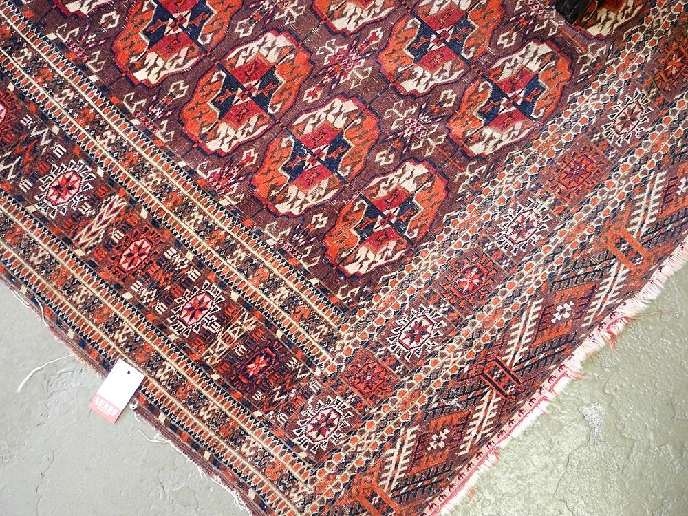 LOT 323 Antique Turkoman Carpet, approx. 58 x 48" (condition noted). Estimate: $100 - $200 Sold For: $100 Auction Date: Tuesday, July 18 2023 at 4:00 PM
