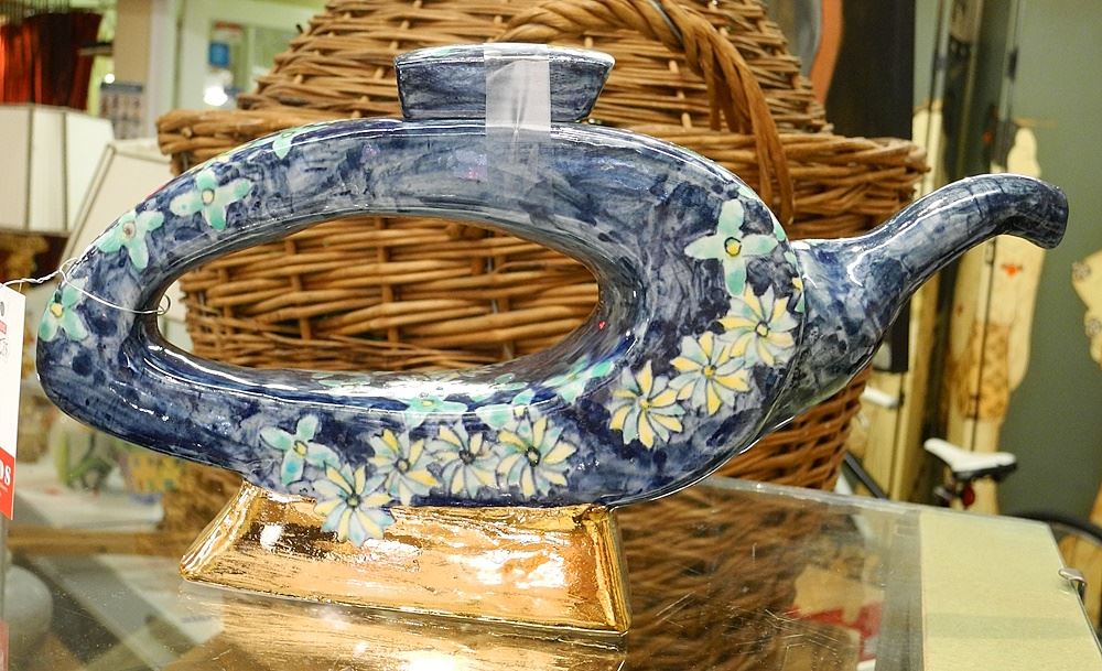 Ceramic Teapot signed (Kinichi) Shigeno, 13 1/2"L.