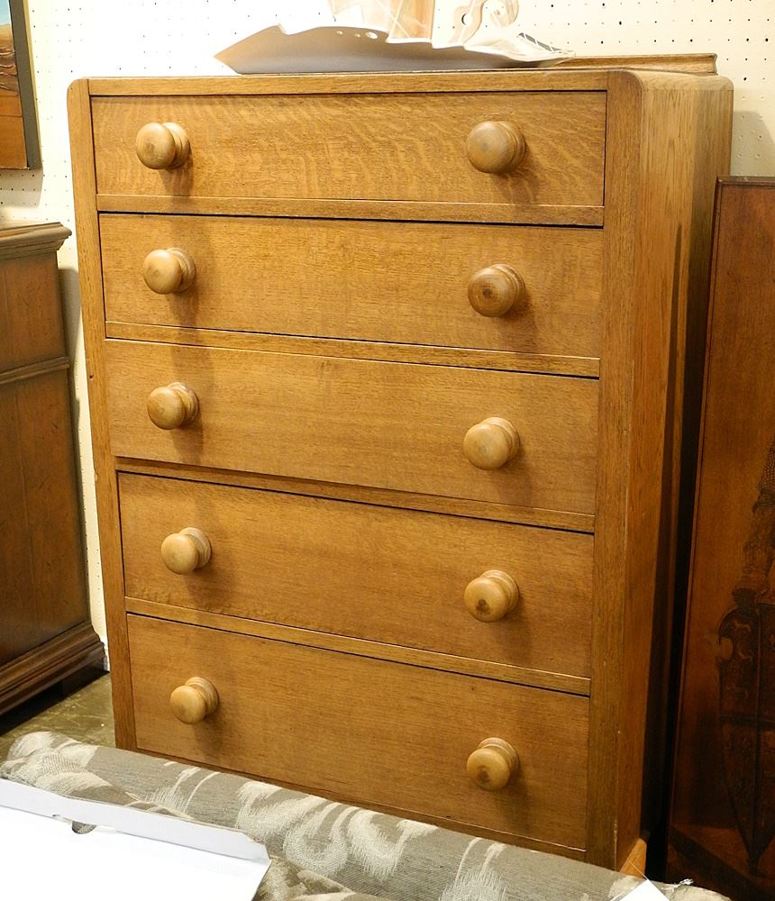 Vintage Oak 5 Drawer Chest, 43 1/2" H.