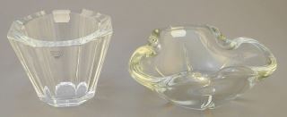 2 Crystal Items: Orrefors Hexagonal Vase, 3 3/8"H and Val St. Lambert Bowl, 2 3/4" x 4 3/8" diam
