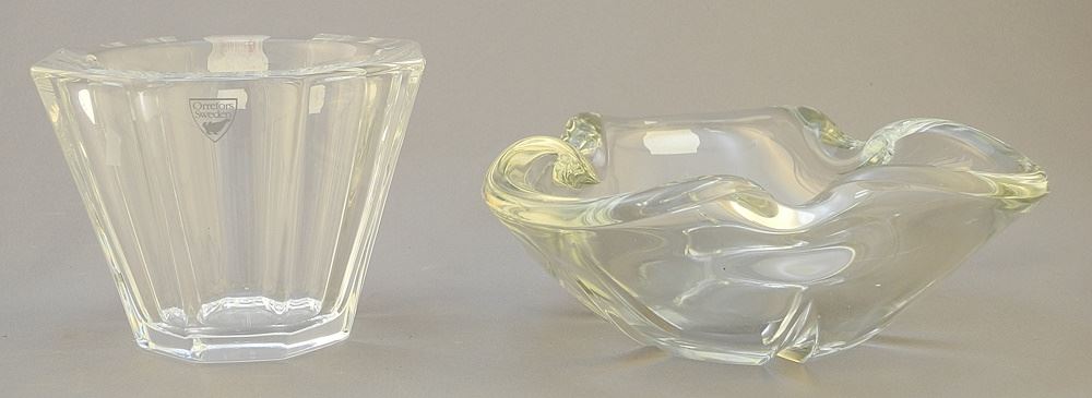 LOT 220 2 Crystal Items: Orrefors Hexagonal Vase, 3 3/8"H and Val St. Lambert Bowl, 2 3/4" x 4 3/8" diam Estimate: $50 - $60 Sold For: $20 Auction Date: Tuesday, July 18 2023 at 4:00 PM