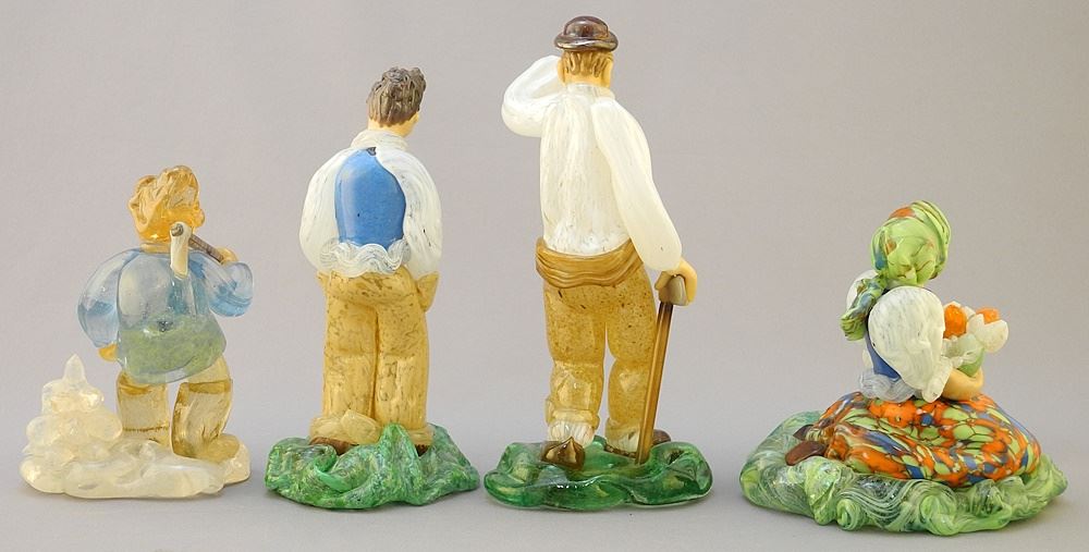 4 Vintage 1940's Czech/Bohemian Art Glass Figurines with original stickers.