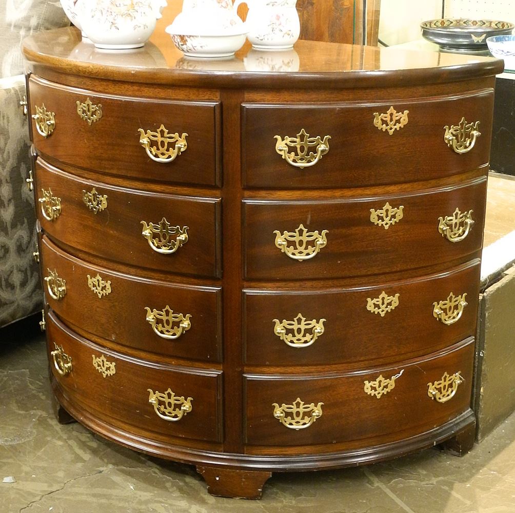 LOT 256 Mahogany Bowfront 4 Drawer Chest with False Drawers. Estimate: $120 - $180 Auction Date: Tuesday, July 18 2023 at 4:00 PM