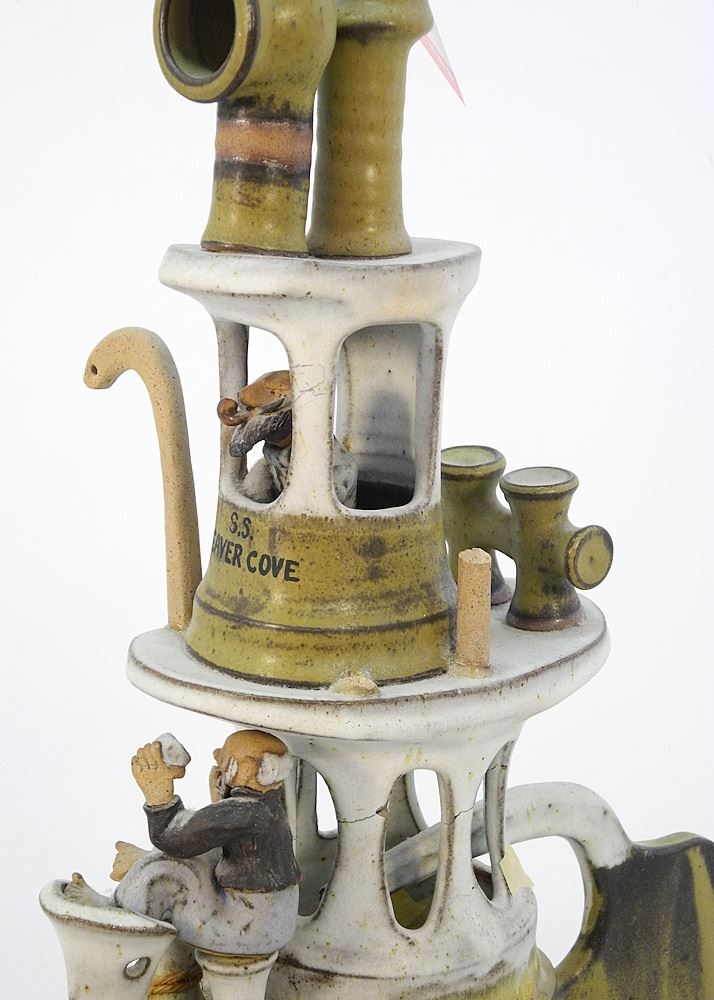 LOT 75 Stoneware Sculpture signed Roger Stribley, 28 1/2" x 5 3/4" x 14", "S.S.Beavercove" (damage n Estimate: $50 - $100 Sold For: $50 Auction Date: Tuesday, July 18 2023 at 4:00 PM