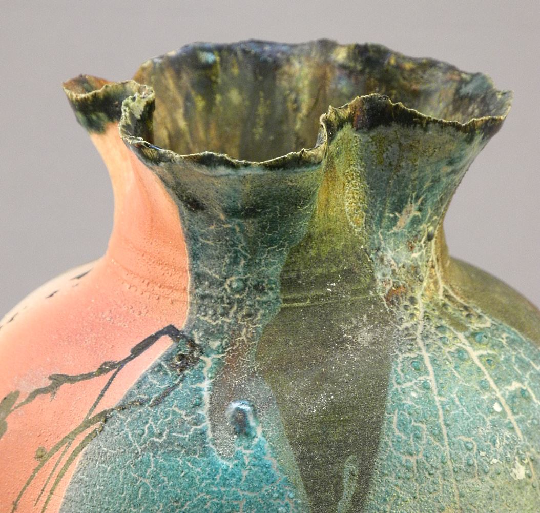 Raku Vase signed Larry Aguilar, 6 3/8"H.