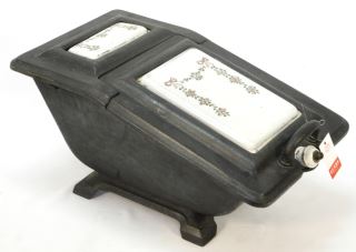 Cast Iron & Enamel Coal Scuttle with Scoop & Coal 23" L