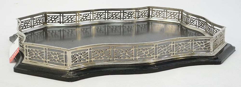 LOT 92 Contemporary Galleried Cocktail Tray 22 1/2"W. Estimate: $50 - $60 Sold For: $60 Auction Date: Tuesday, July 18 2023 at 4:00 PM