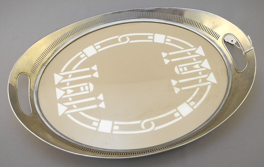 Villeroy & Boch Jugendstil Design Plated and Ceramic Oval Tray, 16 1/4"W.