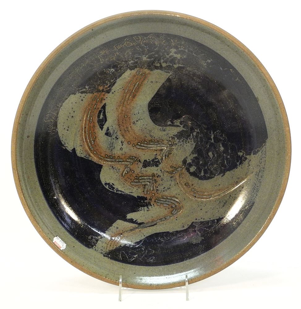 Stoneware Shallow Bowl signed (Walter)Dexter, 15 1/2" diam.