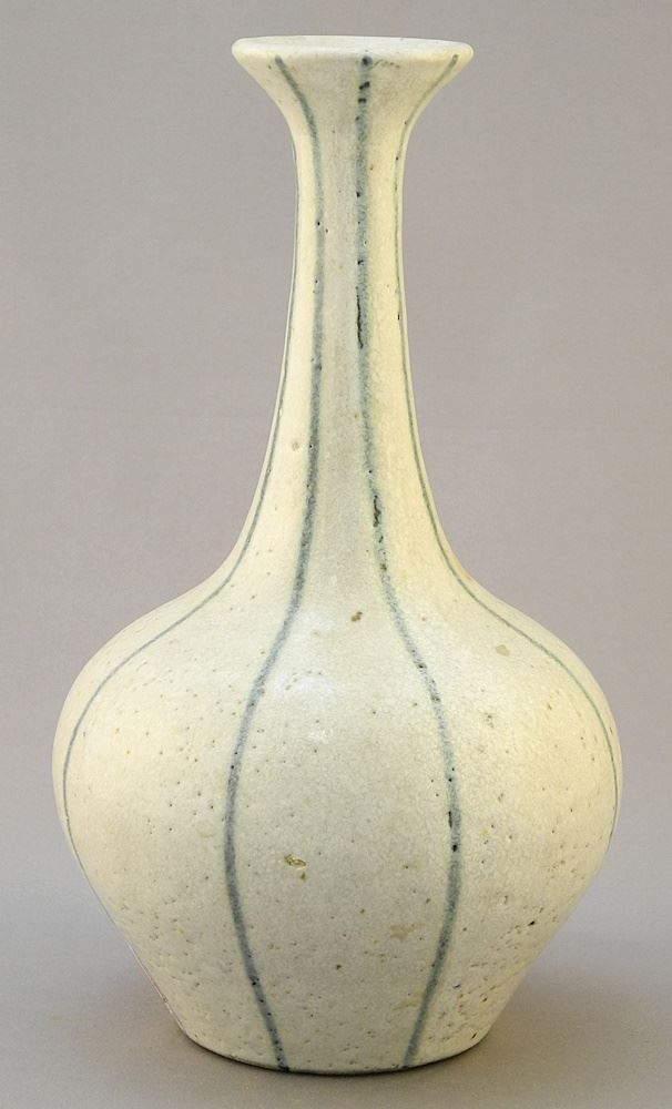 LOT 148 Stoneware Bottle Vase with Green Features, signed (Fred) Owens, 8 1/4 "H. Estimate: $50 - $100 Sold For: $40 Auction Date: Tuesday, July 18 2023 at 4:00 PM