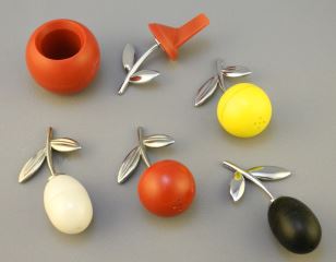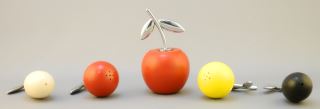 LOT 247 5 Fruit Shaped Condiment Dispensers, 3 3/4" High. Estimate: $50 - $100 Sold For: $10 Auction Date: Tuesday, July 18 2023 at 4:00 PM