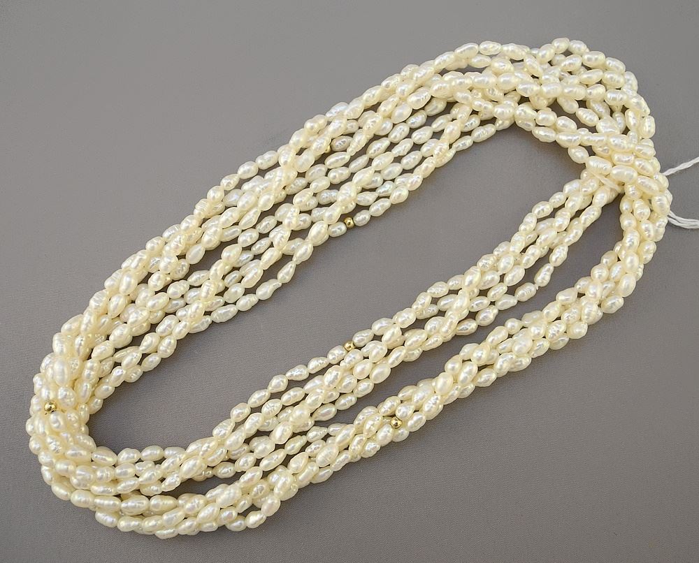 5 Strands of Cultured Freshwater Pearls with Gold Tone Spacers, approximately 28"L.