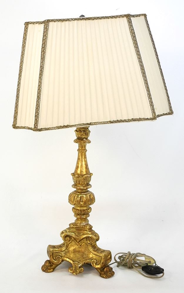 Pair of Gilt Wood Table Lamps, (chipping and restoration noted).