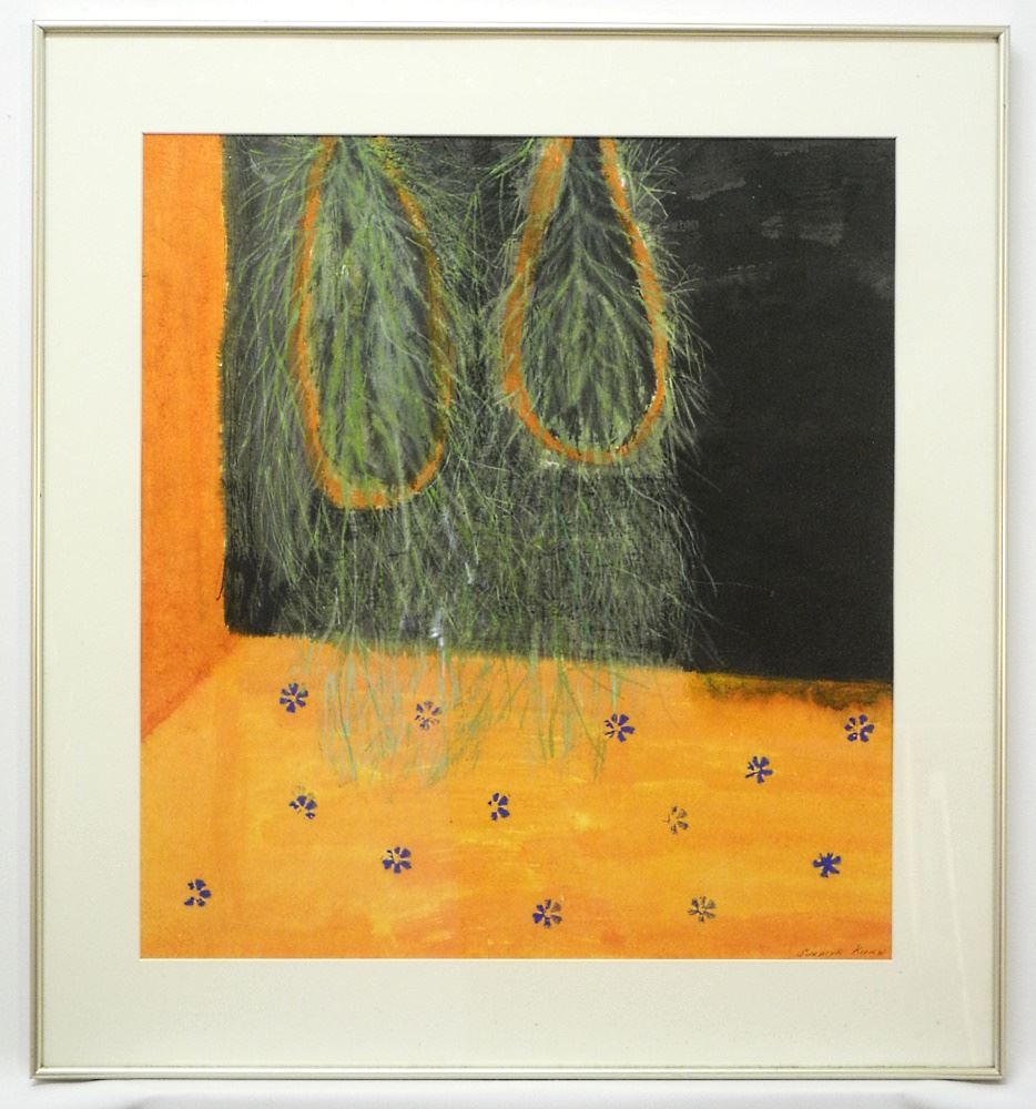 Watercolour signed by Suraiya Khan, 23 x 21", "Hanging Basket w/ Ferns".