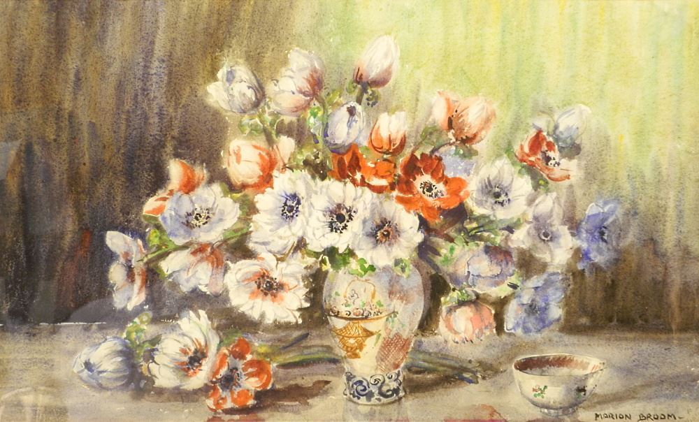 Watercolour signed Marion Broom, 16" X 26 1/2" "Chinese Porcelain Flowers.