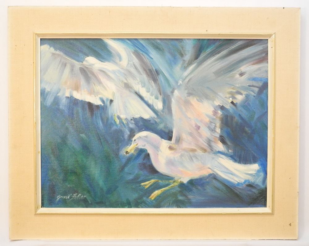 Oil Canvas Board Signed Grant Fuller, 18" X 24" "Seagulls".