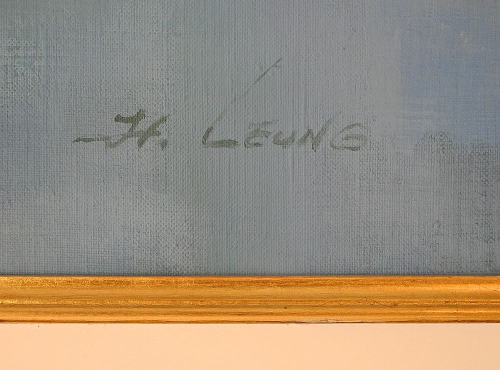 Oil on Canvas Signed H. Leung, 29" x 59 1/2", "Canal Scene".