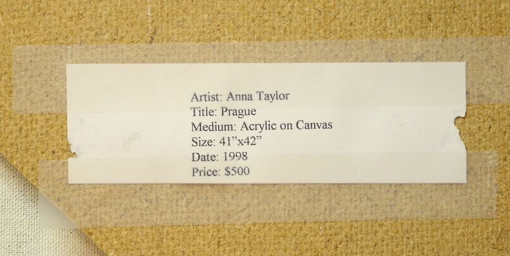 LOT 180A Acrylic on Canvas Signed Anna Taylor '98, Verso, 41" x 42", "Prague". Estimate: $100 - $200 Auction Date: Tuesday, July 18 2023 at 4:00 PM
