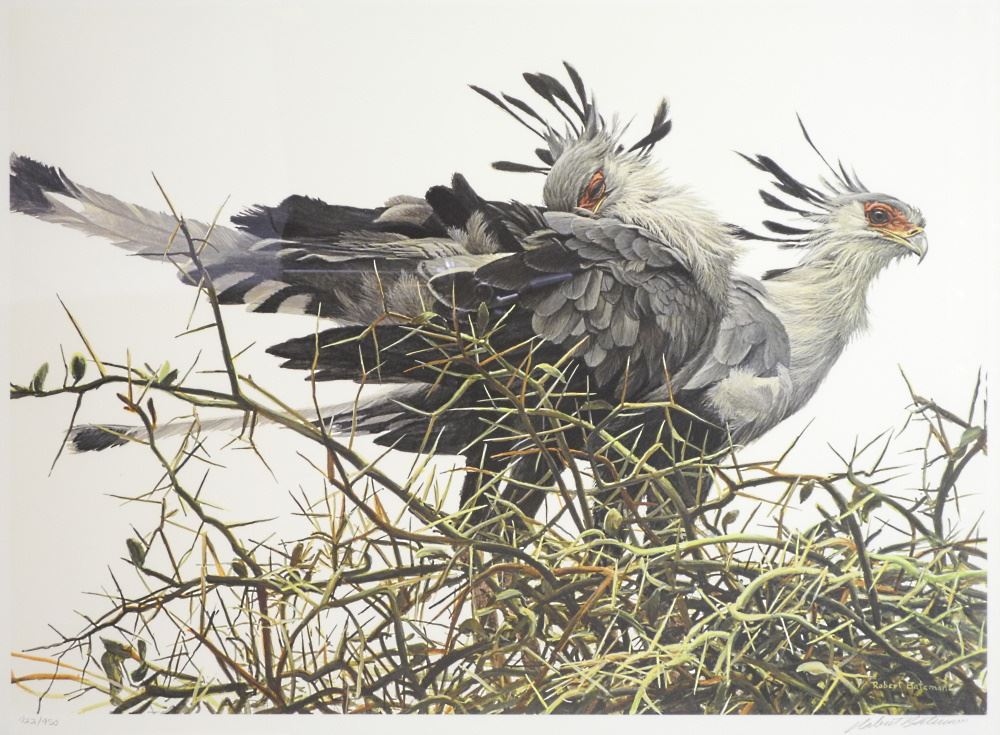 Ltd. Ed. Print Signed Robert Bateman, 21 1/4" x 28 3/4", "At The Nest - Secretary Birds".