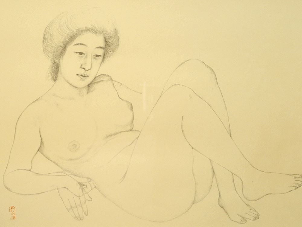 Lithograph after Goyo Hashiguchi, 11 1/2" x 15", "Reclining Nude".
