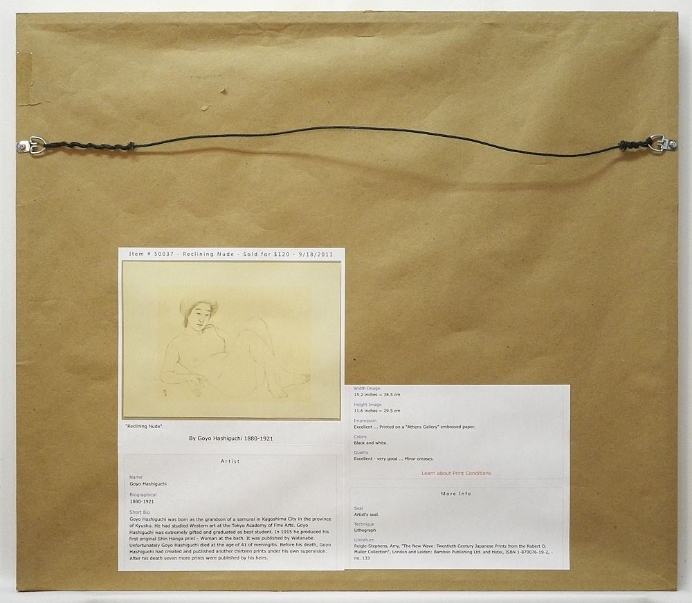 LOT 64 Lithograph after Goyo Hashiguchi, 11 1/2" x 15", "Reclining Nude". Estimate: $150 - $200 Auction Date: Tuesday, July 18 2023 at 4:00 PM