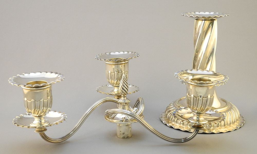 Pair of Silver Plated Table Candleabra, 8 1/8" X 9 7/8" X 9 7/8"