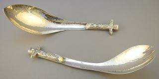 Pair of Jefferies & Co. Silver Plated Totem Servers, 10 3/4"L.