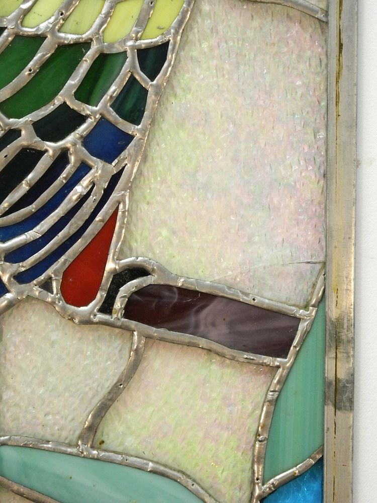 LOT 57 Leaded Glass "Parrot Panel", 36 1/2" x 17 3/4". Estimate: $100 - $200 Sold For: $120 Auction Date: Tuesday, September 26 2023 at 4:00 PM