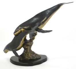 Bronze Sculpture Monogrammed SPI (SPI Home), 14 3/8 x 11 1/2 x 17", "Humpback Whales".