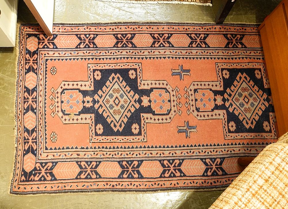 LOT 268 Handknotted Persian Carpet, Pink & Blue, approx. 33 x 62". Estimate: $60 - $100 Sold For: $60 Auction Date: Tuesday, September 26 2023 at 4:00 PM