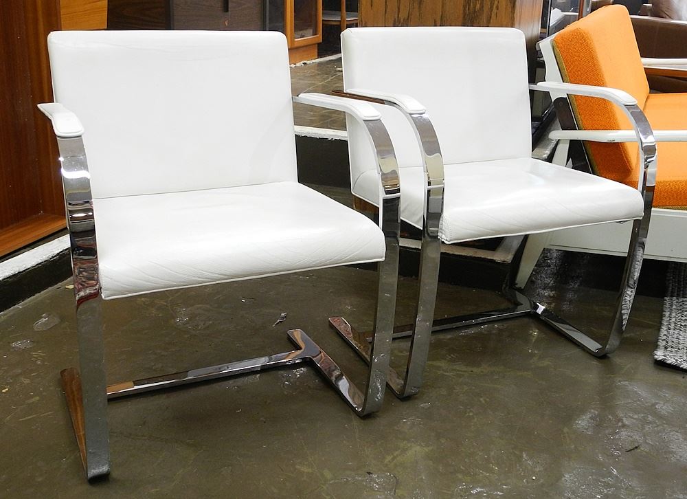 Six Mies van der Rohe Brno Chairs With White Leather, Lot includes a Custom Dining Table