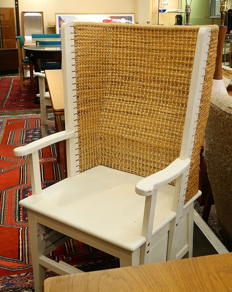 LOT 250A Orkney Wingback Chair with Drawer signed "Jackie Miller Scapa Crafts Orkeny". Estimate: $200 - $300 Auction Date: Tuesday, September 26 2023 at 4:00 PM