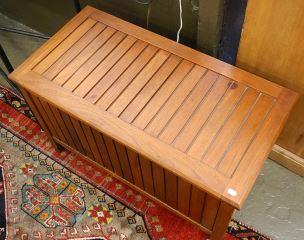 LOT 71 Teak Lathe Trunk, 31 5/8"W. Estimate: $100 - $150 Auction Date: Tuesday, September 26 2023 at 4:00 PM