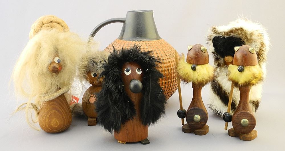 LOT 314 Collection of Scandinavian Teak Figures with Royal Krona Owl & W German Jug. Estimate: $100 - $200 Sold For: $50 Auction Date: Tuesday, September 26 2023 at 4:00 PM