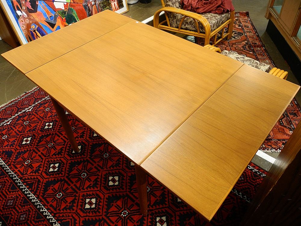 Danish Modern Teak Draw Leaf Table, 28 1/4 x 33 3/8 x 33 3/8".