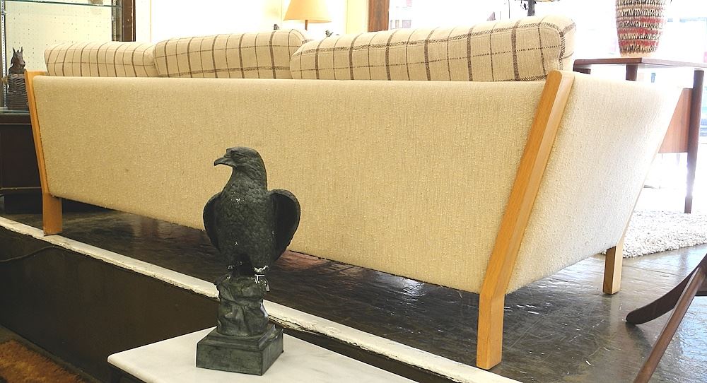 LOT 10 Danish Modern Style Oak Frame Sofa, 89"W. Estimate: $200 - $300 Sold For: $130 Auction Date: Tuesday, September 26 2023 at 4:00 PM