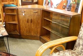 LOT 292 G-Plan Corner Bureau with Cabinet & Open Angled Shelf, 33 1/2' High Estimate: $150 - $300 Auction Date: Tuesday, September 26 2023 at 4:00 PM