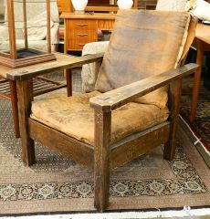 LOT 311 Oak Arts & Crafts Morris Chair with Old Leather Cushions, as found. Estimate: $60 - $100 Sold For: $120 Auction Date: Tuesday, September 26 2023 at 4:00 PM