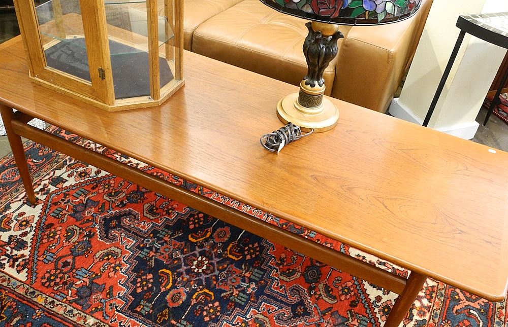 Trioh Denmark Danish Modern Teak Low Table, 70"L (as found).