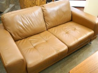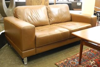 LOT 91 Brown Leather Loveseat Raised On Chrome Legs, 69" Wide Estimate: $150 - $250 Sold For: $110 Auction Date: Tuesday, September 26 2023 at 4:00 PM