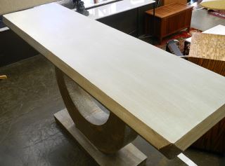 LOT 98 Silver Finish Cresent Shaped Console Table, 36 x 72 x 22". Estimate: $100 - $200 Sold For: $50 Auction Date: Tuesday, September 26 2023 at 4:00 PM