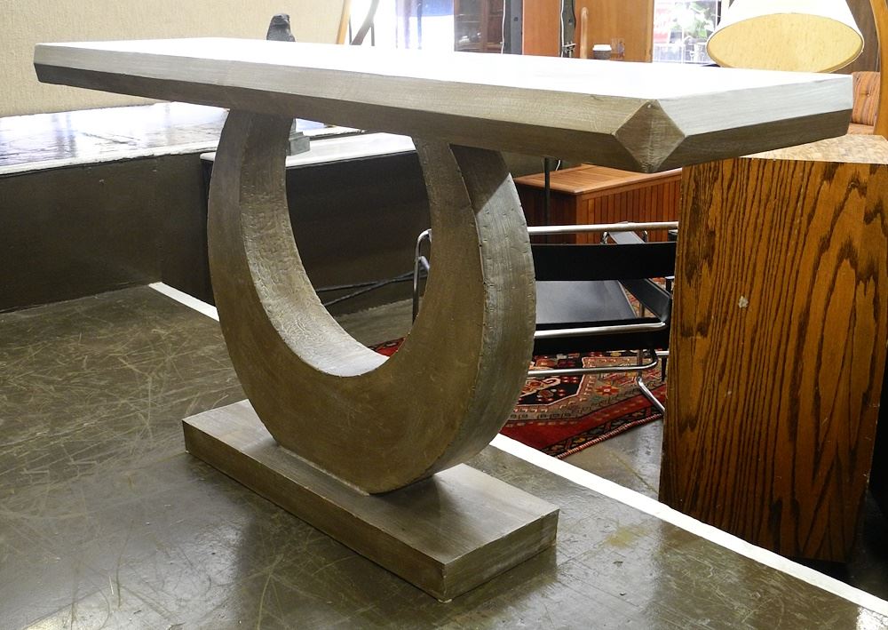 Silver Finish Cresent Shaped Console Table, 36 x 72 x 22".