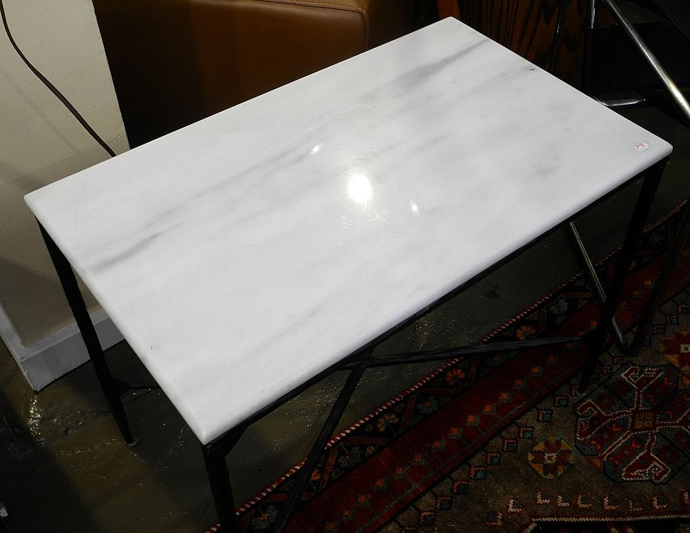 LOT 68 Marble Top Wrought Metal Console Table & End Table, 32" & 22 1/4". Estimate: $150 - $300 Sold For: $140 Auction Date: Tuesday, September 26 2023 at 4:00 PM