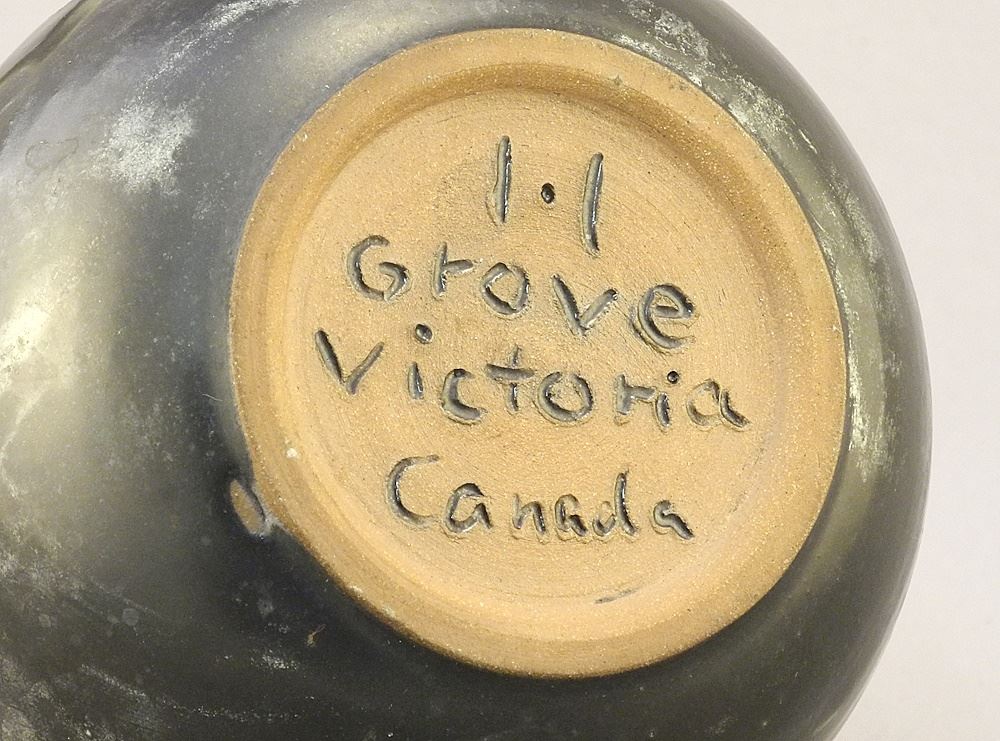 Stoneware Candle Holder Monogrammed Helga Grove, 3 7/8"H.