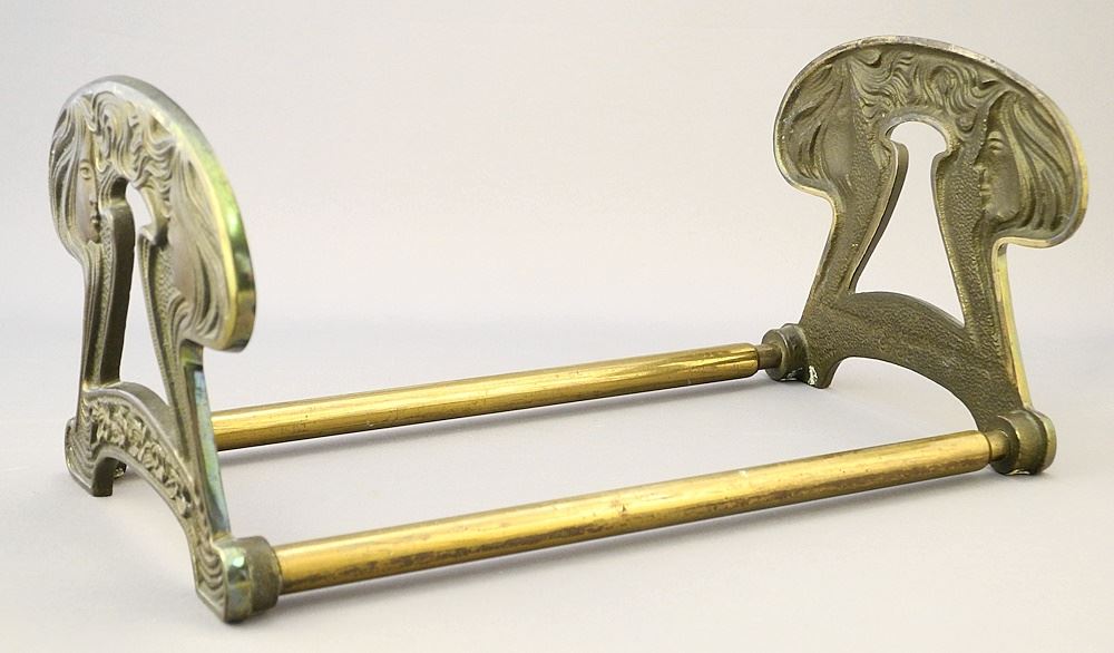 Art Nouveau Brass Extendable Book Rack, 9"W (when closed).
