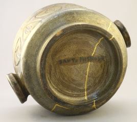 LOT 294 Stoneware Casserole Dish signed Santo Mignosa with Kintsuge Technique, 10"W. Estimate: $60 - $100 Sold For: $50 Auction Date: Tuesday, September 26 2023 at 4:00 PM