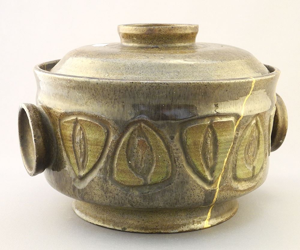 Stoneware Casserole Dish signed Santo Mignosa with Kintsuge Technique, 10"W.